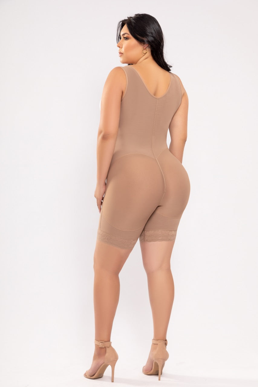 High compression girdle made of powernet with cold touch and anti-allergic internal lining, High compression Butt Lifter Short Girdle with waist control. Abdomen flattens upper and lower. Maximum back coverage. Correction posture. Front zipper and intimate part open.