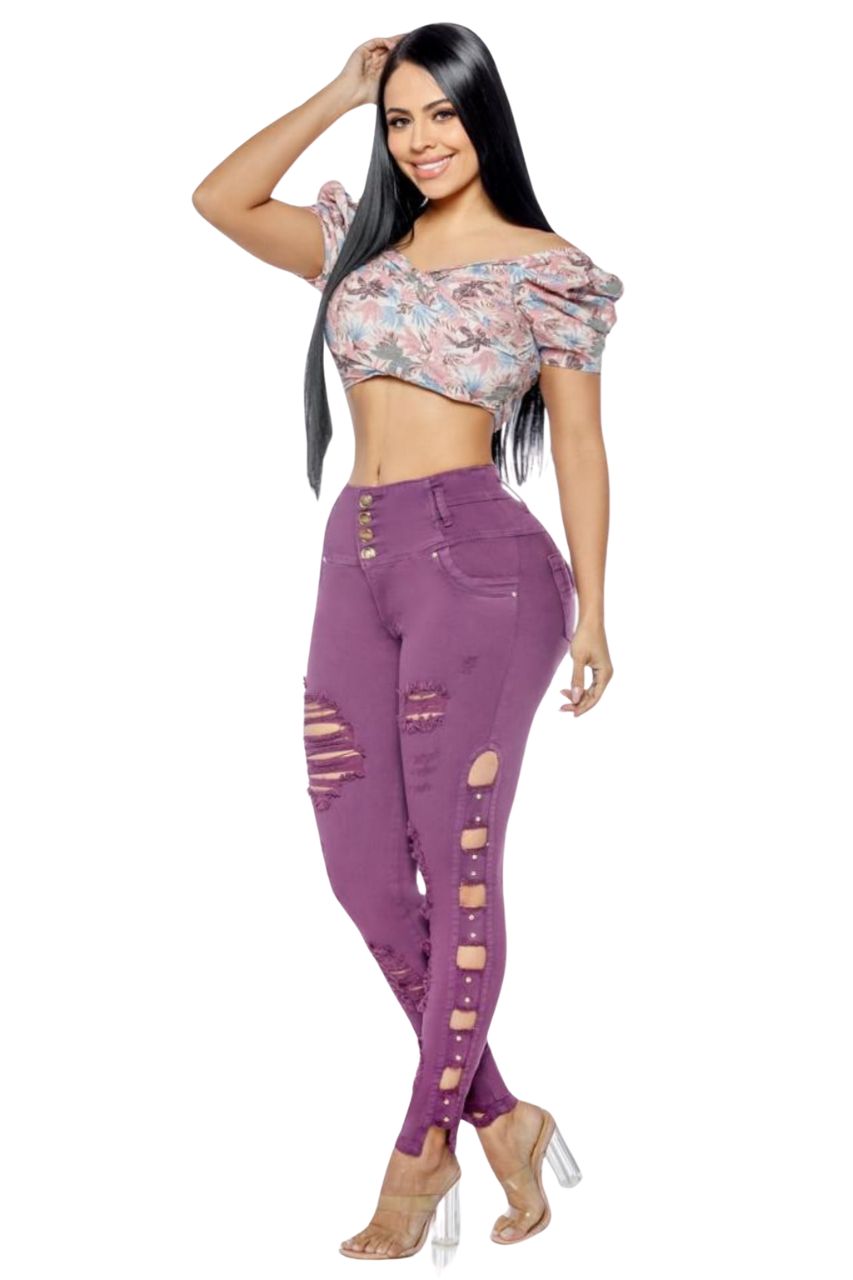 This Jean is a butt lifter, your buttocks will look instantly more enhanced. High rise to make you feel comfortable and secure. Its silhouette is fitted and made of indigo flat fabric, cotton, polyester, and elastane. NO RETURN OR EXCHANGES ON SALE ITEMS