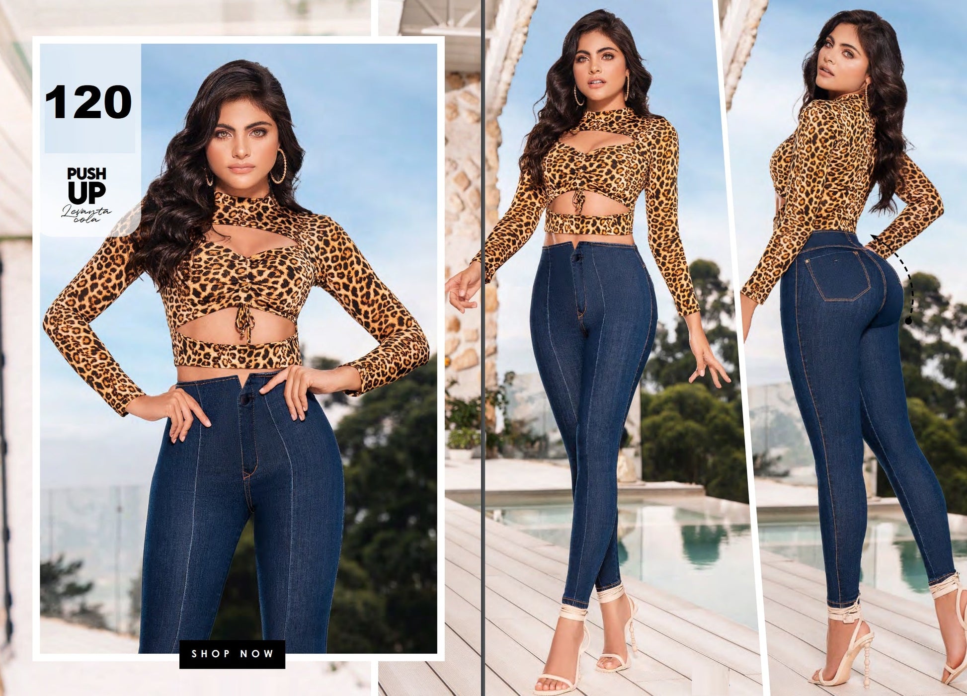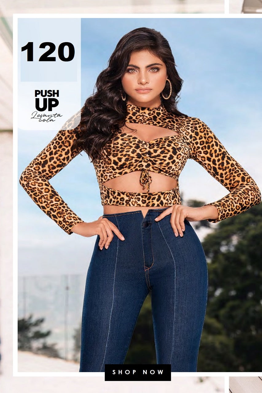 Este Jean es levantacola, tus glúteos lucirán más realzados al instante. Tiro alto para hacerte sentir cómoda y segura. Su silueta es ajustada y está elaborado en tejido plano índigo, en algodón, poliéster y elastano.