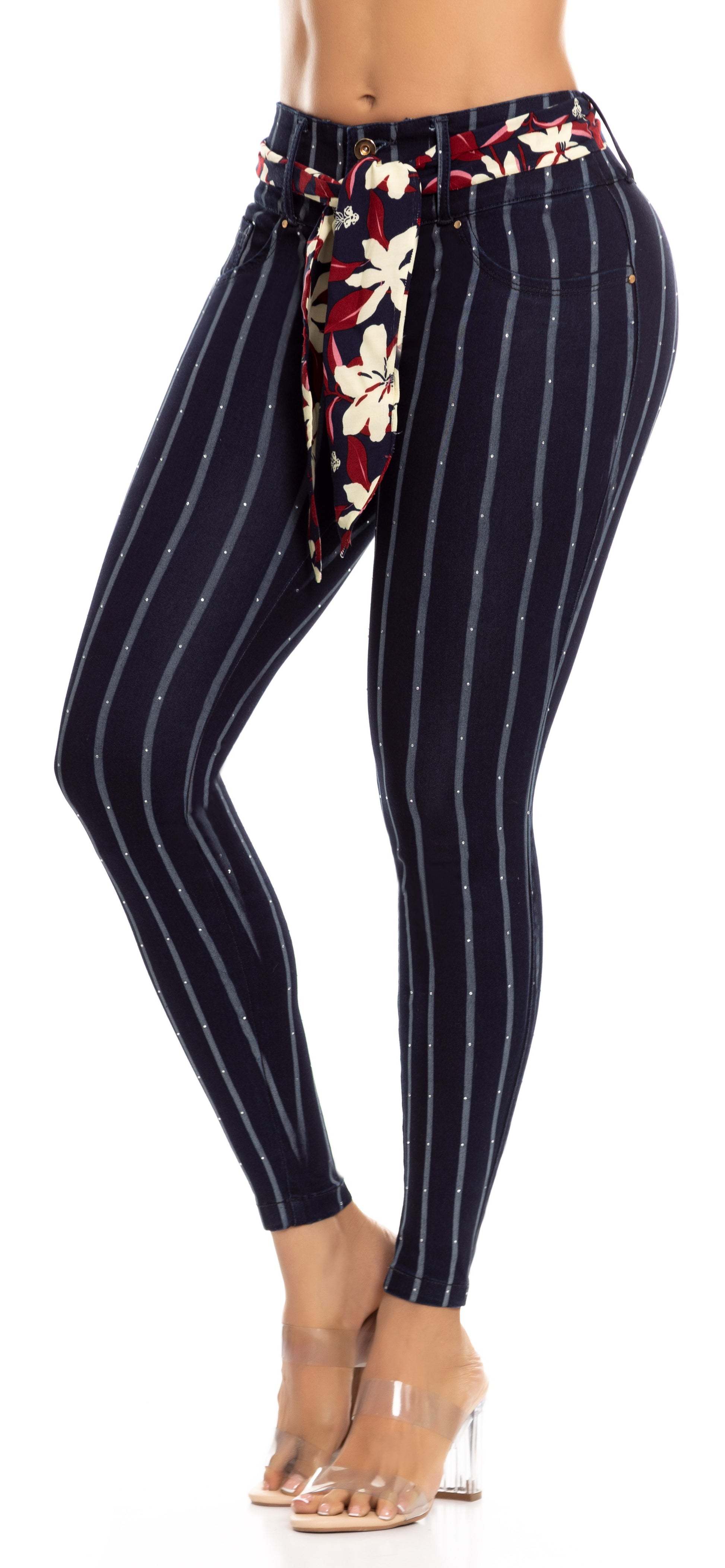 This Jean is a butt lifter, your buttocks will look instantly more enhanced. High rise to make you feel comfortable and secure. Its silhouette is fitted and made of indigo flat fabric, cotton, polyester, and elastane.
