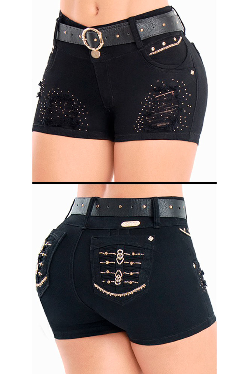 This Short is a butt lifter, your buttocks will look instantly more enhanced. This style make you feel comfortable and secure. Made in Colombia with indigo flat fabric, cotton, polyester, and elastane.